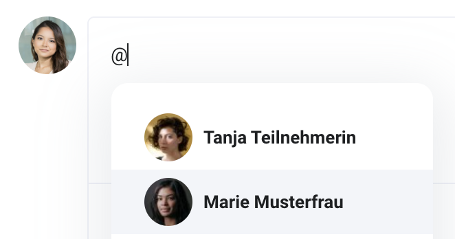 Innerhalb von Kommentaren können andere Teilnehmer erwähnt und damit benachrichtigt werden. So können gezielt einzelne Personen angesprochen werden, dies ist z.B. für Rückfragen oder Diskussionen nützlich.