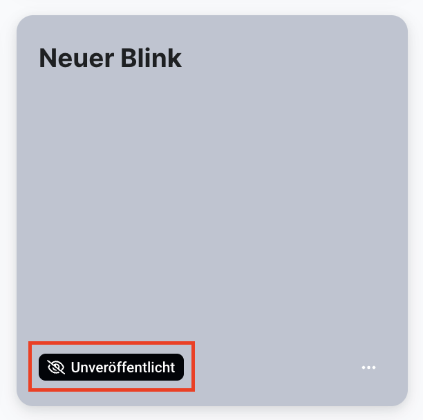 Wenn du einen Blink noch nicht direkt veröffentlichen willst, kannst du diesen als Entwurf belassen. Damit der Blink ein Entwurf bleibt, schließe den Blink einfach, ohne eine Veröffentlichung einzustellen. Deine Änderungen am Blink werden automatisch gespeichert. Du erkennst Entwürfe an der Aufschrift "Unveröffentlicht" am unteren Rand der Blink-Kachel: