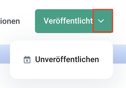 Ein bereits veröffentlicher Blink kann jederzeit wieder auf Entwurf gesetzt werden. Klicke dafür auf dem Button "Veröffentlicht" auf den Pfeil und dann auf "Unveröffentlichen":