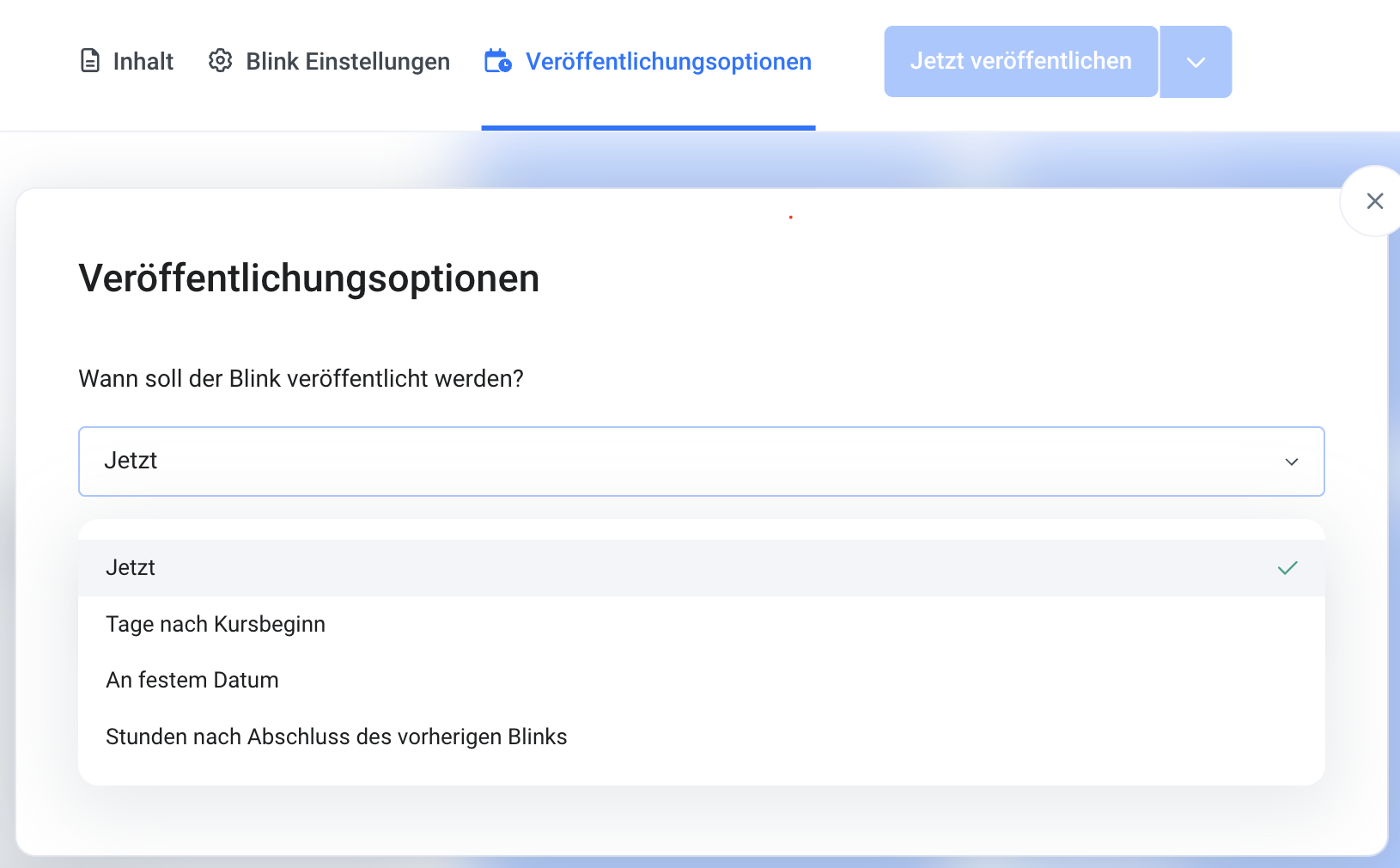 Klicke auf die Schaltfäche "Veröffentlichungsoptionen" und wähle aus, wann der Blink freigegeben werden soll:
