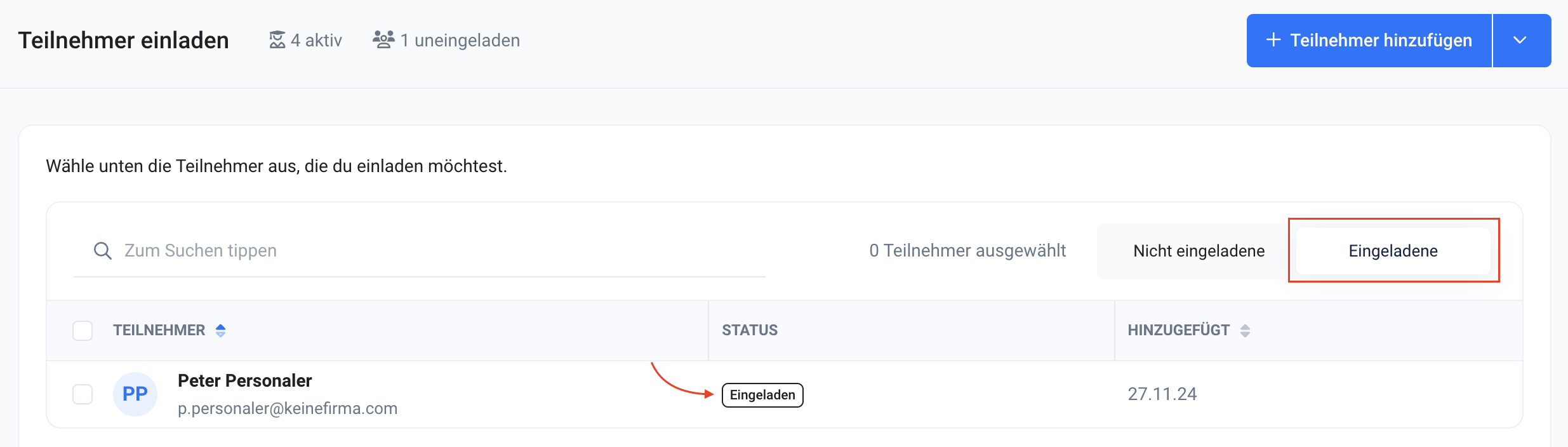 - Navigiere zu "Teilnehmer" → "Einladen".