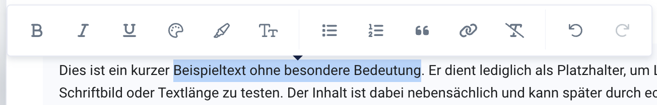 Um Texte zu formatieren, markiere die gewünschte Textstelle. Über dem markierten Text erscheint dann eine Schaltfläche mit verschiedenen Formatierungsoptionen: