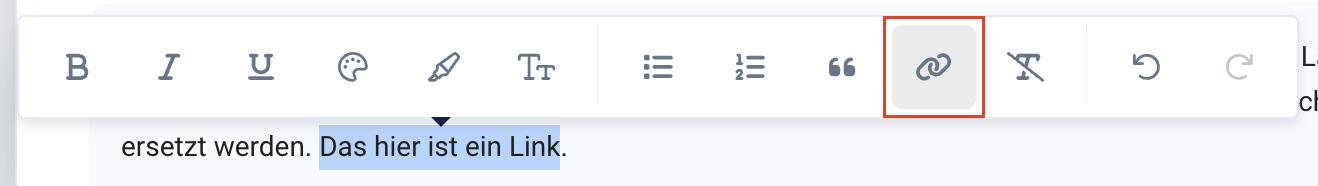 Um einen Link hinter Text zu hinterlegen, markiere einfach den gewünschten Text und klicke auf das Link-Symbol: