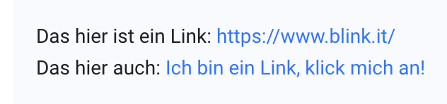 Ob ein Link korrekt eingefügt wurde, erkennst du an der Farbe: