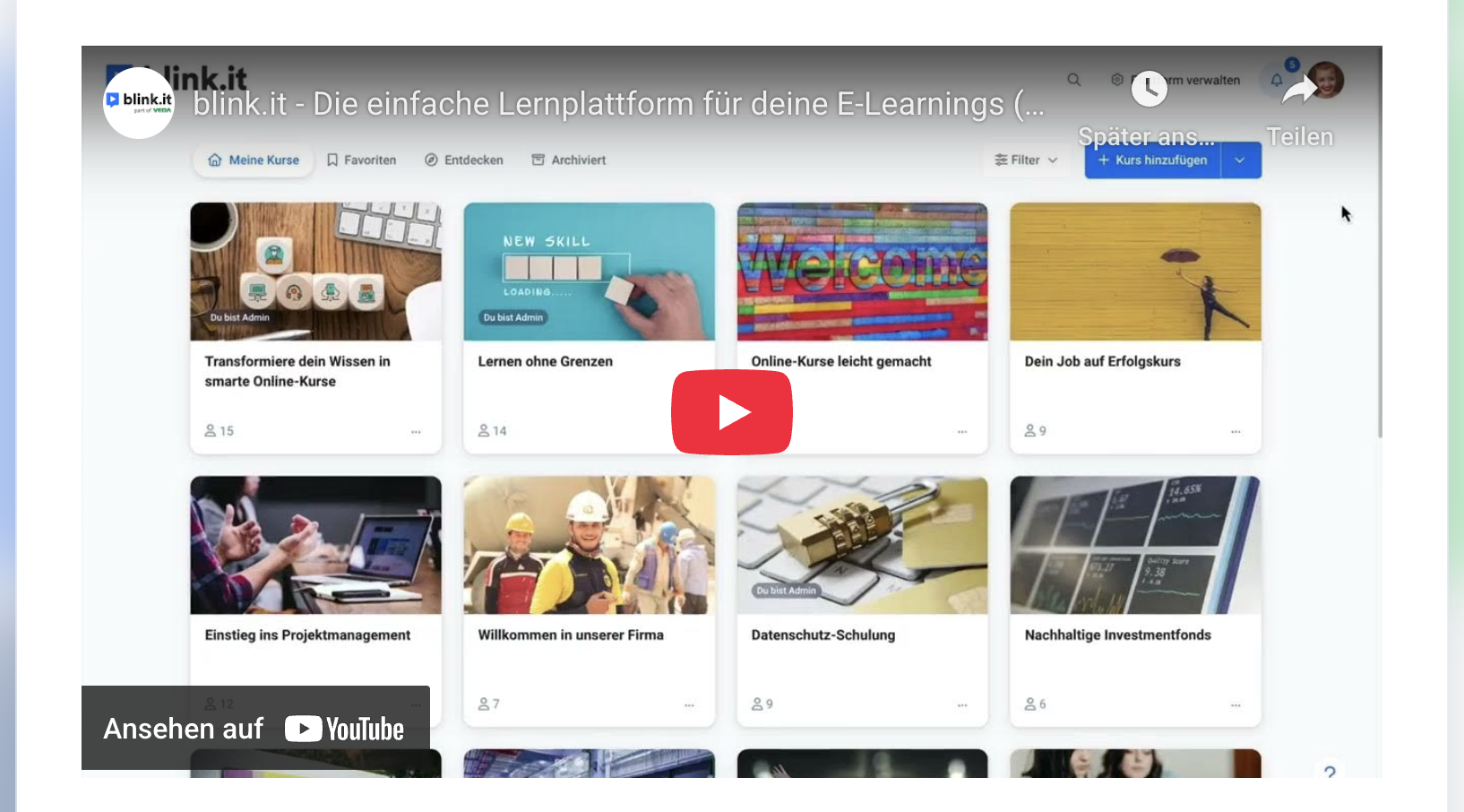 Fertig! Dein Link wurde nun eingebettet und der Inhalt kann nun von Teilnehmern direkt im Blink aufgerufen werden, ohne dass sie den Kurs verlassen müssen: