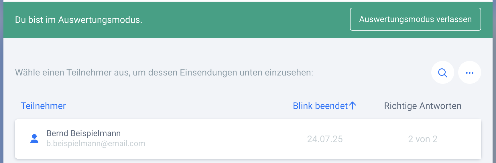 Du hast verschiedene Möglichkeiten die eingereichten Antworten von Interaktions-Blinks (Umfrage, Quiz, Prüfung) auszuwerten.