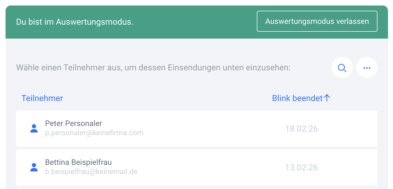 - Öffne den Interaktions-Blink, den du auswerten möchtest und wechsle in den Auswertungsmodus.