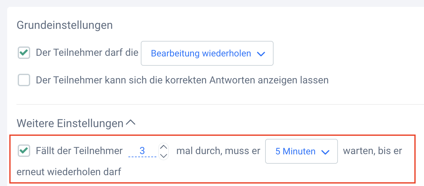 "Fällt der Teilnehmer ... mal durch, muss er ... warten, bis er erneut wiederholen darf" - Interaktionseinstellung