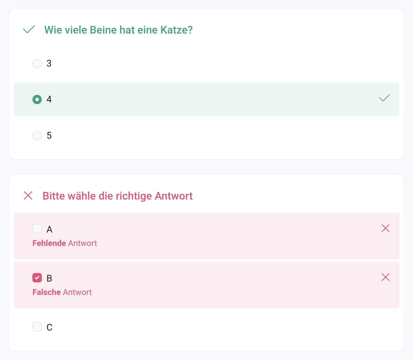 Ja nachdem, was die Teilnehmer geantwortet haben, werden die Antworten nach Absenden auf eine der folgenden Arten farblich markiert: